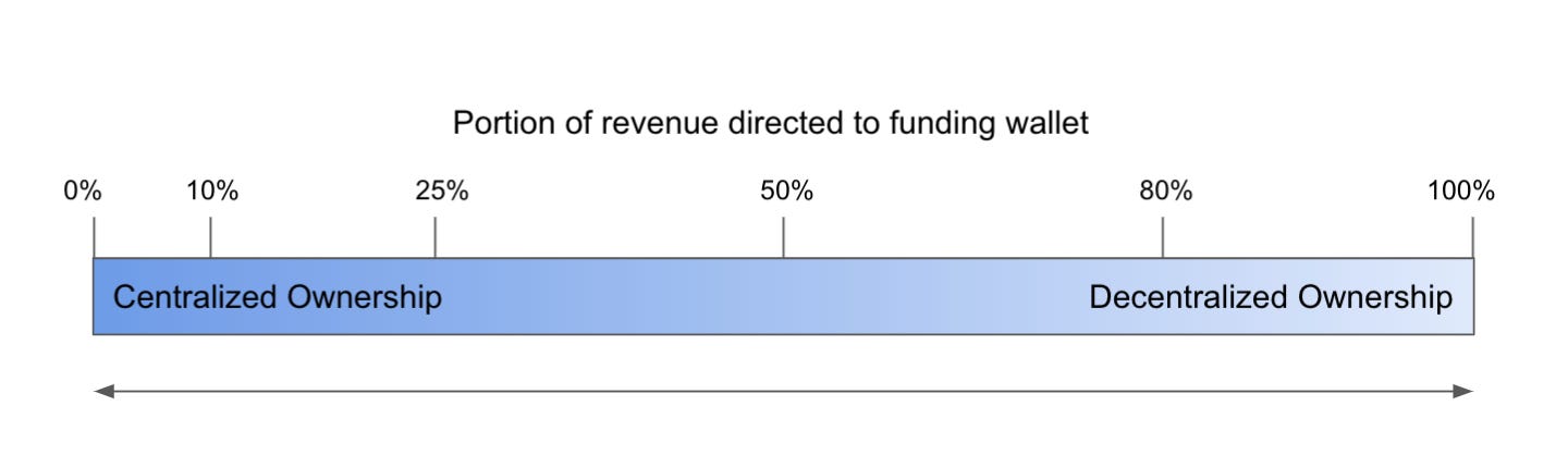 The owner is now a partial owner and primary manager of the business. He buys ingredients, manages his workforce, and pays for expenses. The funding source for expenses is split between the USD bank account and USDC wallet (proportionally by equity stake). One key point is that the token holders are not calling all the shots in terms of the execution of the business. The analogy is the relationship between a board of directors and the company’s CEO. Finding the right balance on the spectrum of decentralization would be critical to managing the business effectively.
